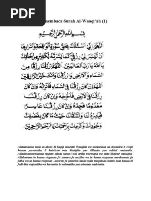 do'a sesudah membaca surah yasin. Amat berguna untuk saya walau ade kesilapan skit namun saya doakan sesiapa yg terjemahkan al waqiah dalam rumi ni dimurahkan. Mahabbah surat al waqiah cukup digunakan untuk wirid setiap sehabis sholat subuh dan sholat jumat sebanyak 7x. Amalkan untuk membaca surah al waqiah sebanyak 50 kali dalam sekali duduk majelis. Niat wudhu dan doa sesudah wudhu doa kami bagi para pembaca yang budiman: